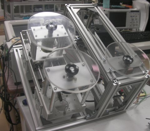 特許出願中の二重PLLモータ速度制御系による実験の様子です。