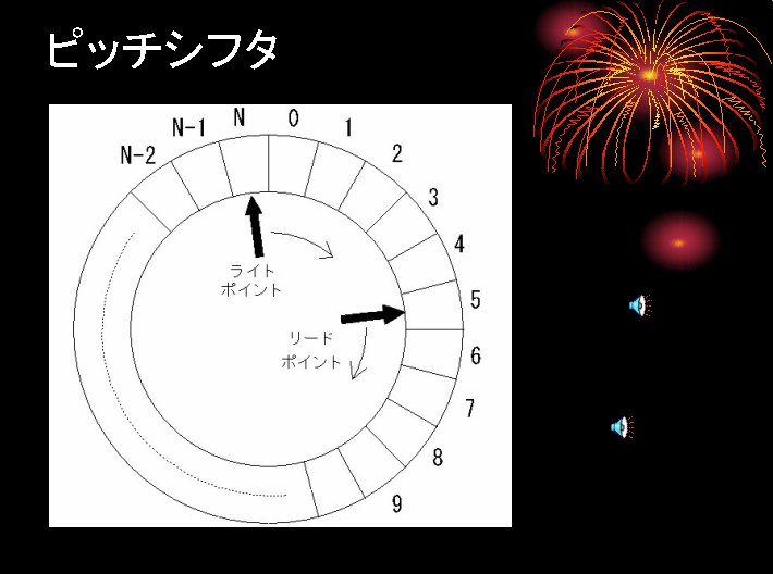 リングバッファに入力された音声を、 速く読み出すとピッチが高く