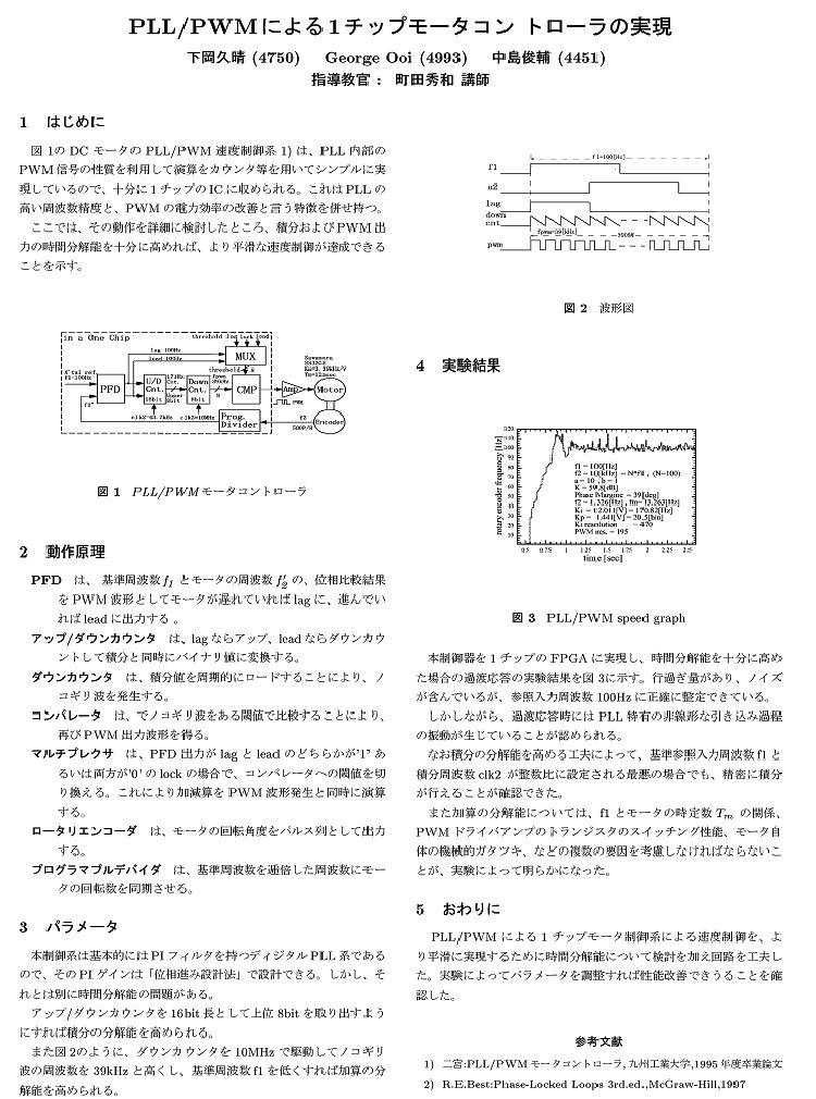 本研究では、小規模(1チップのIC)で実現できるPLL/PWMモータコントローラを