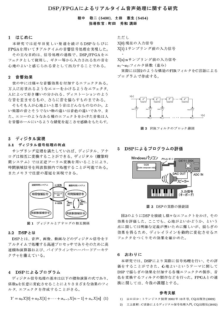 DSP/FPGAによるリアルタイム音声処理に関する研究