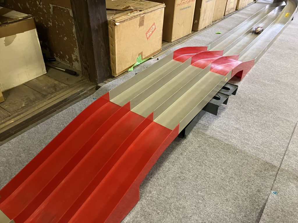 2025/11/8土8:00に舞鶴電脳工作室2Fに冬季用ミニ四駆コースを再設置しました!11/2日の福井県大飯郡高浜町の中央体育館から撤収してきたコースです。